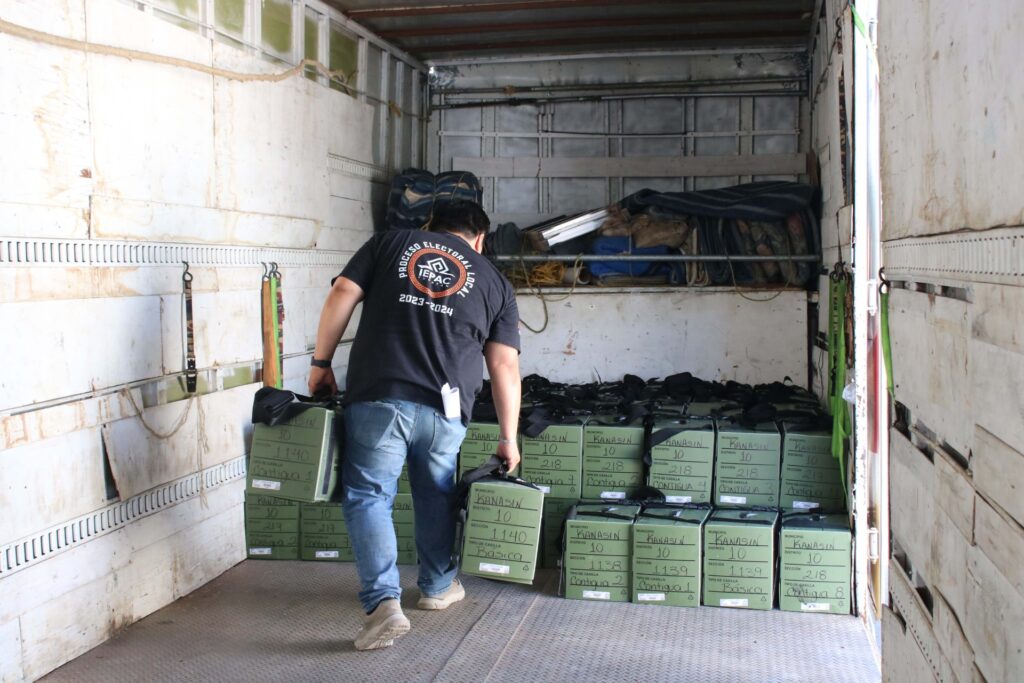 Los paquetes van custodiados por agentes de la Secretaría de Seguridad Pública del Estado y serán depositados en los Consejos Municipales Electorales, de donde los asistentes electorales del Iepac y del INE, a partir de mañana lunes iniciarán la distribución a los presidentes de las mesas directivas de casilla.